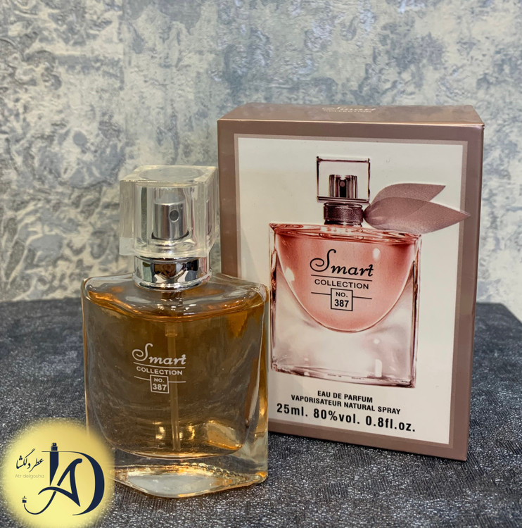 عطر زنانه اسمارت کالکشن 387 لانکوم لا ويه است بله ، با داشتن رایحه ای گلدار ، میوه ای ، خوراکی و ماندگاری بالا، مناسب برای ماه های سرد سال و یا میهمانی های نیمه رسمی شبانه است. رایحه وانیل ، نعنا هندی ، گل یاس ، زنبق و شکوفه پرتقال به کار رفته در آن همچنین رایحه تلخ بادام به راحتی در میان ترکیباتش قابل استشمام می باشد.